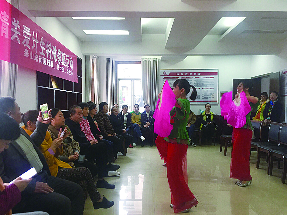 昨日,泰山路街道妇联、计生协为辖区20户计生特殊家庭送温暖,邀请志愿者为他们进行文艺演出,开展互动小游戏,还为每户家庭赠送小礼物。重阳节前夕,街道妇联、计生协还将为其中的6户困难家庭送生活物资。图为志愿者表演。
