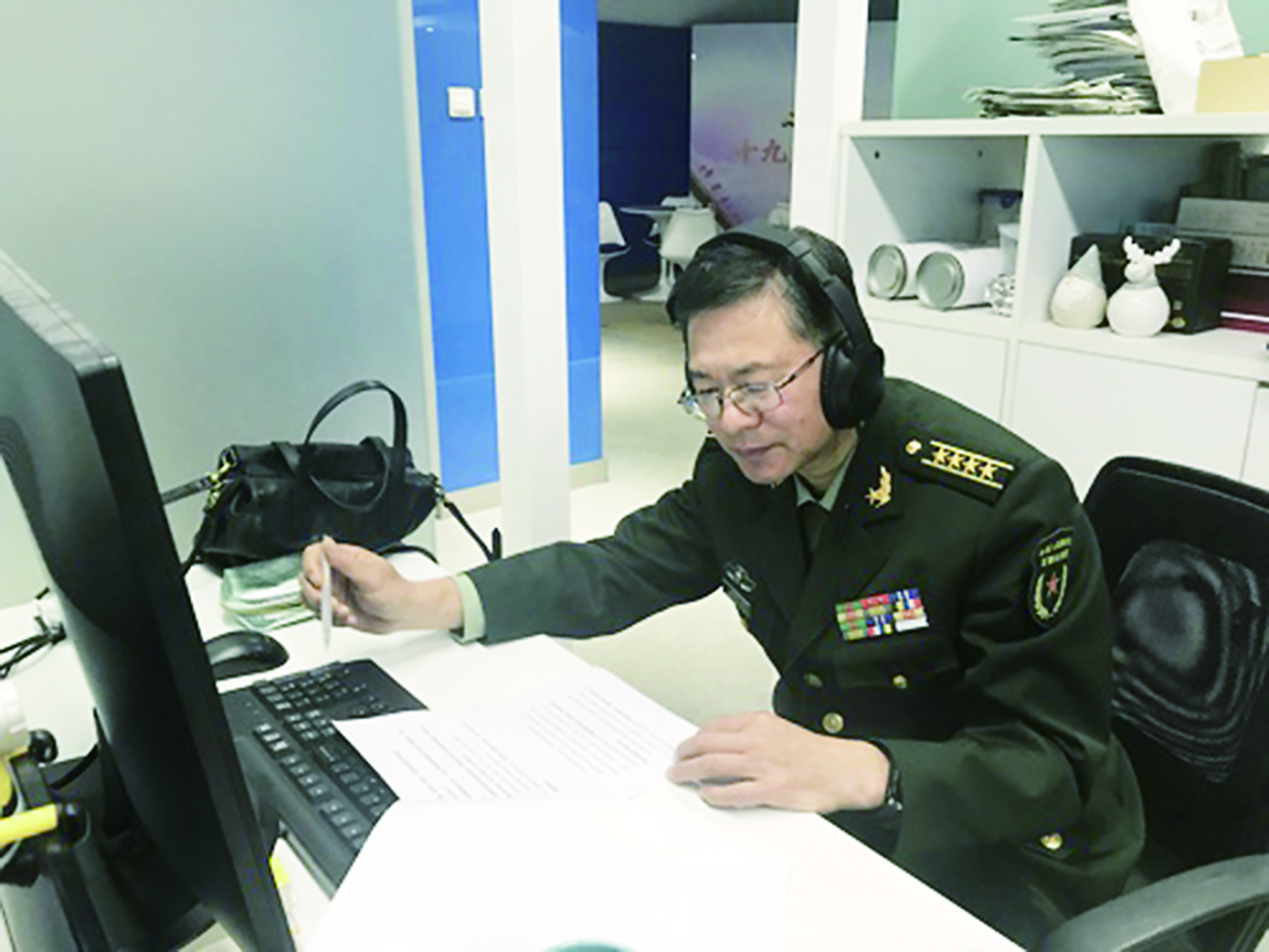 10月18日当天, 游光荣在工作单位跟同事们集中收看十九大开幕式。在此前两天,光明日报向他发出解读邀请,“节目是18日晚上播出,中午就要开始录制,时间很紧张。”游光荣告诉记者,集中收看之前,他温习了党的十七大、十八大报告中关于国防和军队建设领域的重点内容。18日当天,他带着笔记本和两支笔到现场,边听边记,做了十页纸的记录。