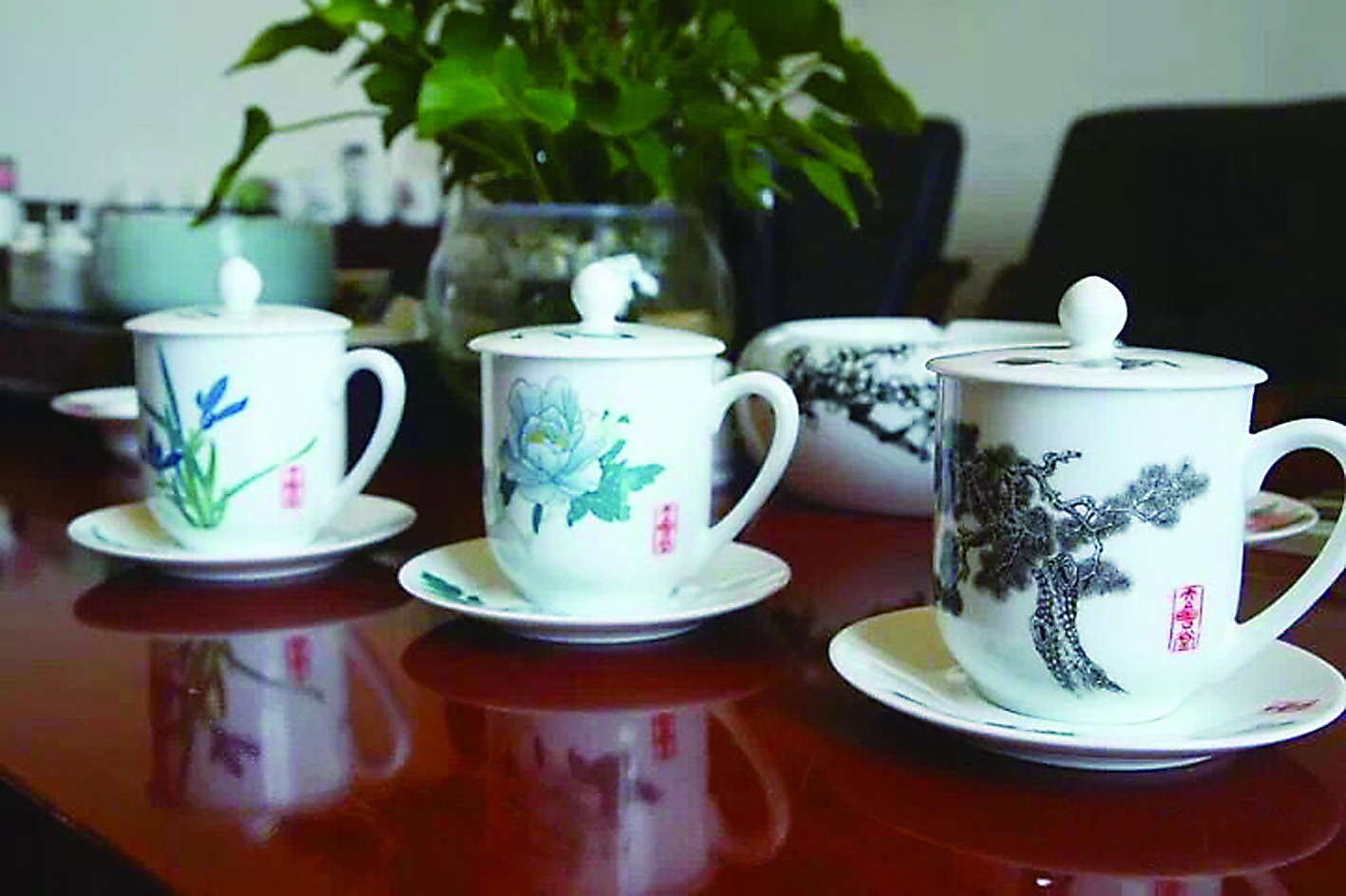 员工满怀激情忙乎了起来。每个茶杯均为全手工打造,要经过高低温不同的4次烧制、手绘图案、上釉等复杂工艺流程,制成高10.5公分、口径8.5公分、瓷壁厚度为2-3毫米,“白如玉、明如镜、薄如纸、声如磬”的瓷杯。