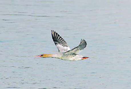 ▲2014年,市民罗恒在株洲湘江边拍摄的“中华秋沙鸭”