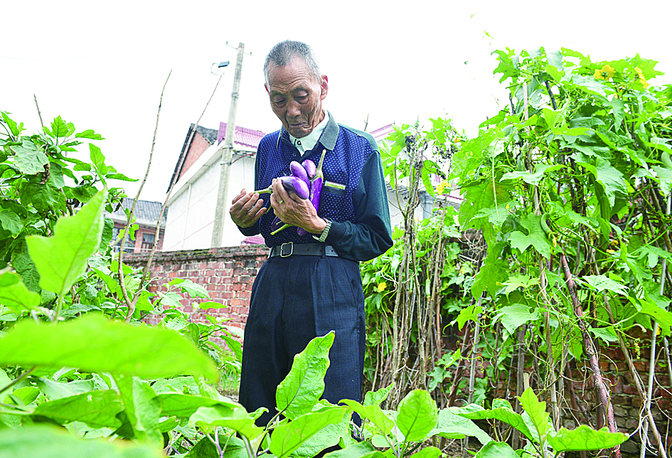 杨开仔老人的身体一直都很硬朗,人也很精神,100岁的人了,还能种菜,院子里开垦的菜地里,种着茄子、丝瓜、苦瓜等时令蔬菜,这也是他坚持了一辈子的习惯——爱劳动。