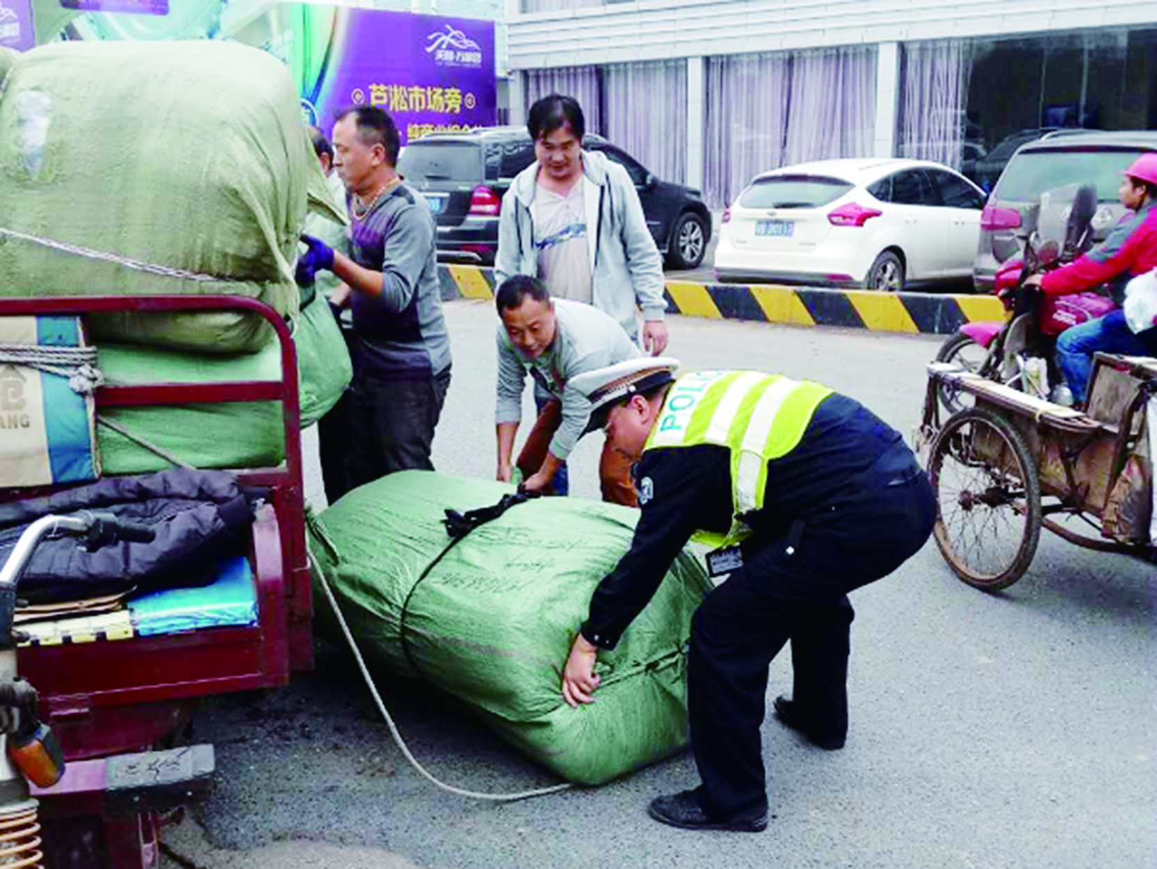 本报讯(记者 肖蓉 通讯员 管丽)10月19日中午11时50分许,荷塘交警大队五中队中队长曾轶明在石宋路执勤时,发现一辆三轮车上的货物掉落在地。见此情景,他立即上前帮忙搬运货物,避免货物占道导致拥堵。