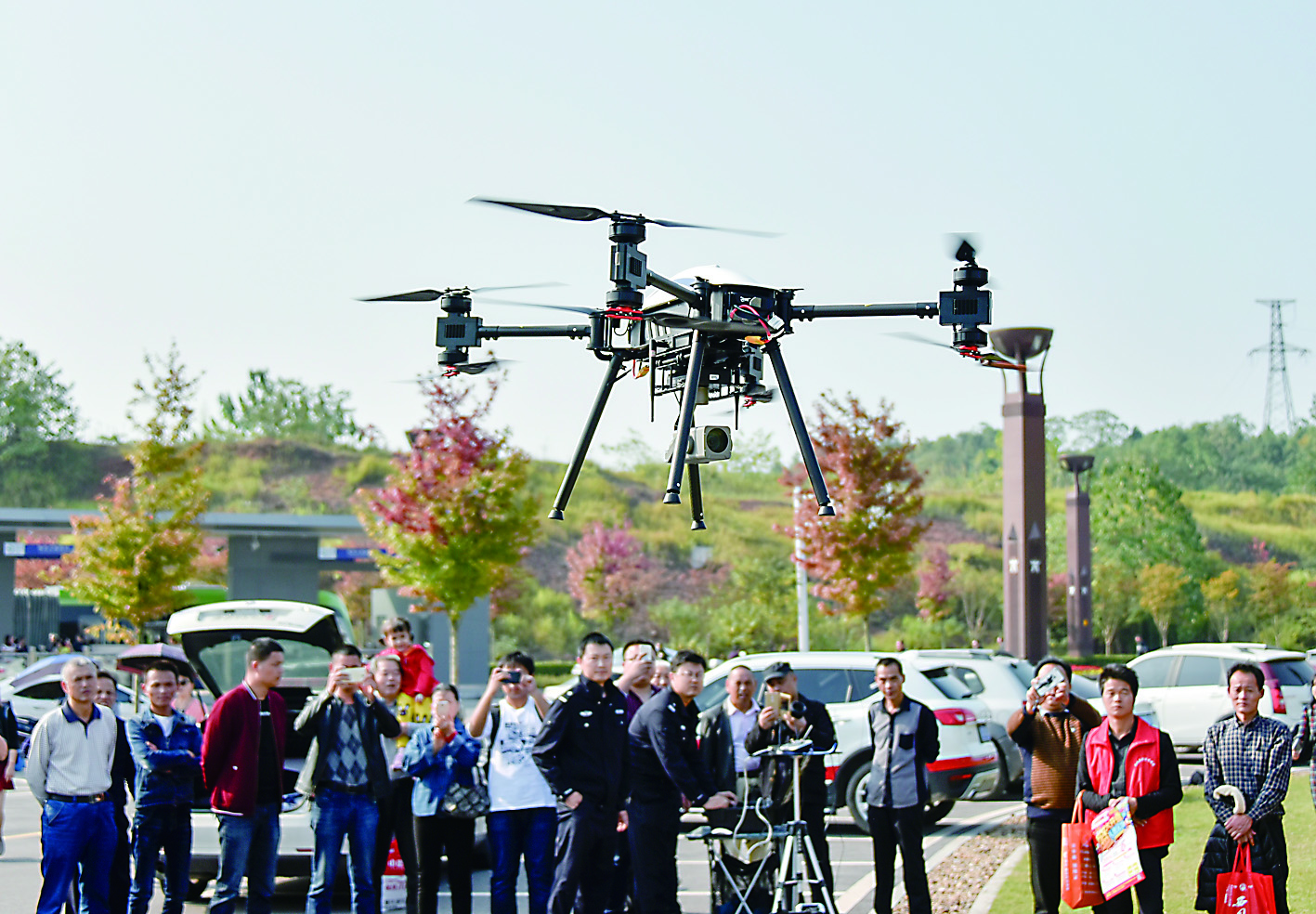 ▲昨天,交警部门在神农大道展示利用无人机进行巡逻,参与道路交通管理 记者 刘震 摄