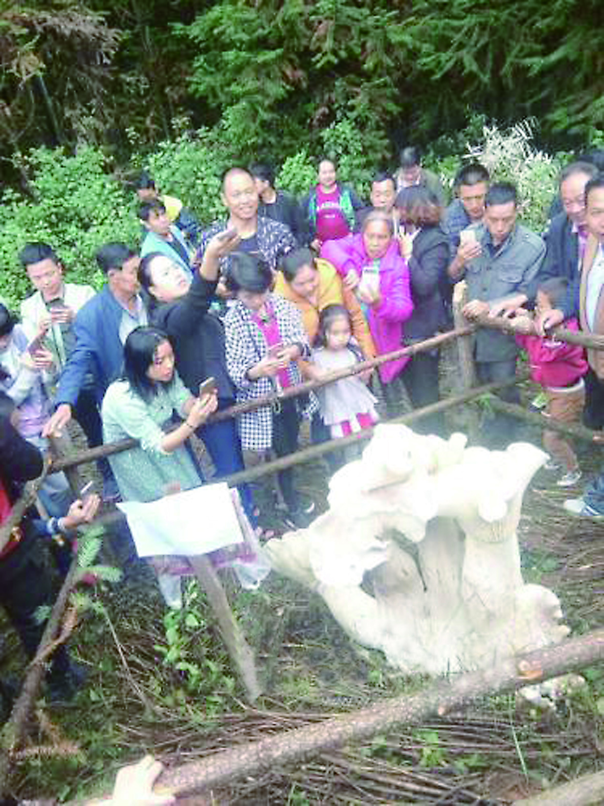 近日,云南腾冲市小罗绮坪村民小组发现一朵巨型“野生蘑菇王”的消息,成为了当地村民茶余饭后的热门话题。据了解,这几株菌最高已达到83.5厘米,单菌伞直径就有40厘米,被当地村民戏称为“大象脚”。当大量的照片流传到网络后,吃货们也坐不住了,讨论最多的话题便是“到底能不能吃?”中国科学院昆明植物研究所专家表示,这是可以食用的巨大口蘑。 (本报综合)