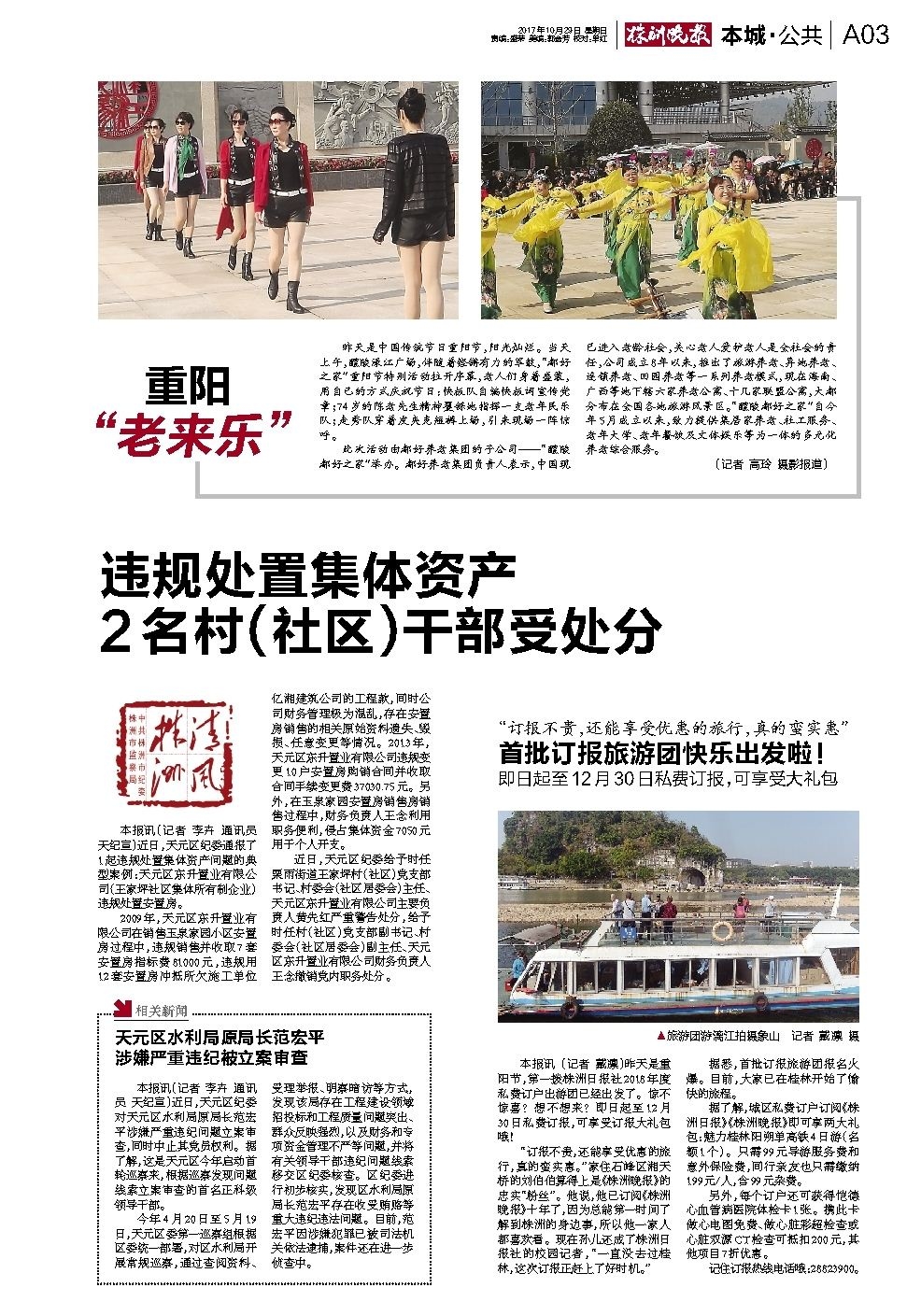 昨天是中国传统节日重阳节,阳光灿烂。当天上午,醴陵渌江广场,伴随着铿锵有力的军鼓,“都好之家”重阳节特别活动拉开序幕,老人们身着盛装,用自己的方式庆祝节日:快板队自编快板词宣传党章;74岁的陈老先生精神矍铄地指挥一支老年民乐队;走秀队穿着皮夹克短裤上场,引来现场一阵惊呼。