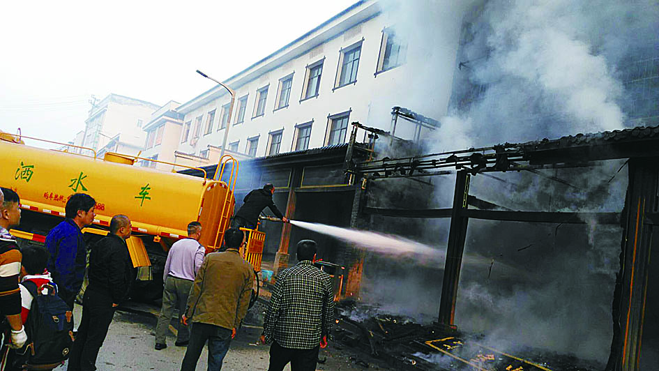 本报讯(记者 刘玺)前日早上7时许,芦淞区白关镇一电器店突然起火,店内受损严重,周边几栋民房在洒水车的“保护”下,得以幸免。