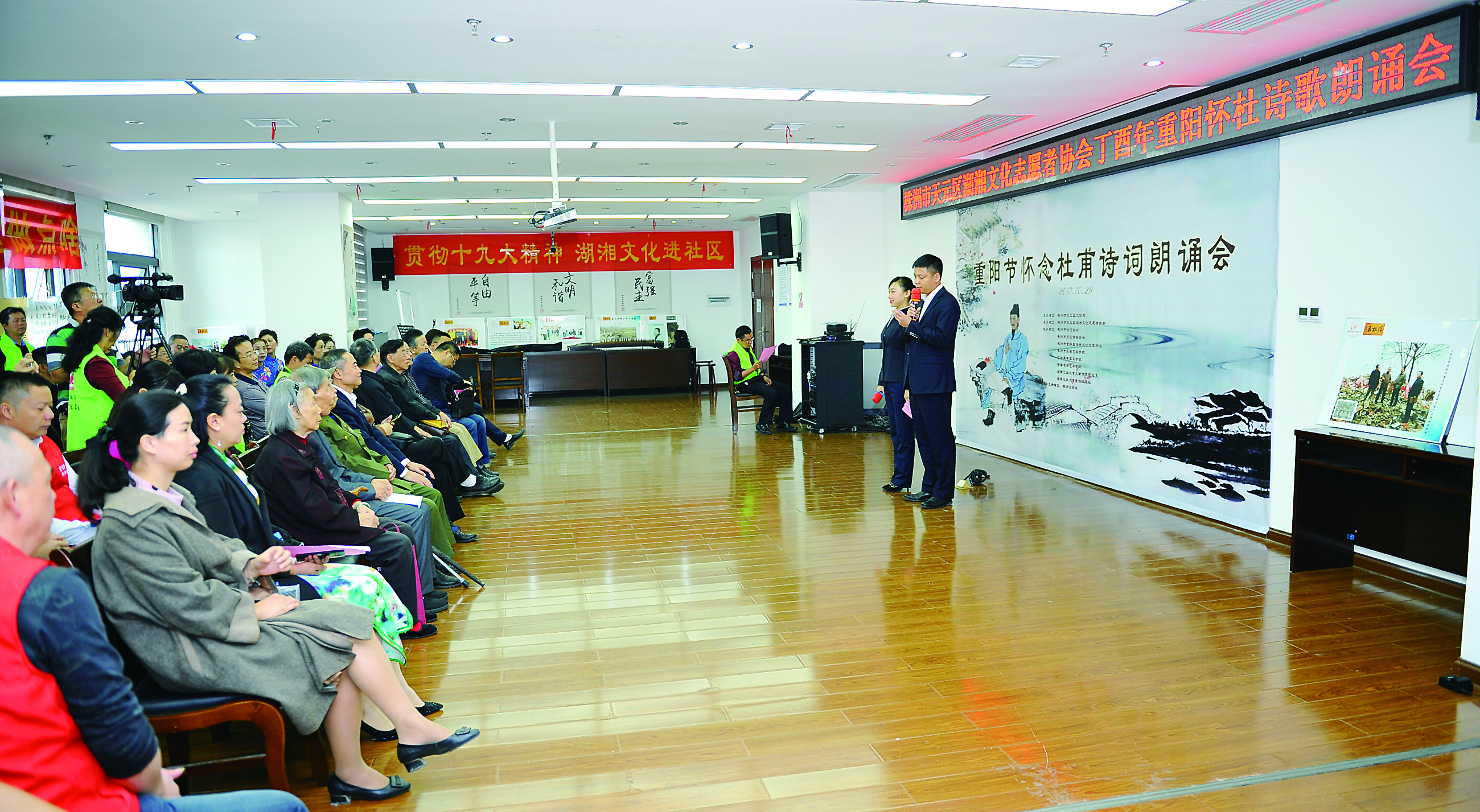 湖湘文化志愿者易伟仁说,公元769年,杜甫来到株洲,写下了千古名篇《宿凿石浦》和《早行》,随后杜甫又两次经过株洲,一共写下9首诗,为株洲留下了宝贵的文化遗产。为了提振株洲的文化自信,留住乡愁,他们倡议恢复举办重阳节怀念诗圣杜甫诗词大会,并申请将“株洲市重阳节怀念杜甫诗词大会”列为非物质文化遗产。 (记者 赵露 摄影报道)