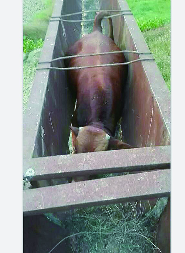 “黄牛有六七百斤重,再加上铁槽底部的铁皮年久锈损,它刚走几米就把底部铁皮踩穿了。”袁先生说,牛的四肢都被铁皮割伤,尤其是右后肢还伤到了骨头。第二天,他请了兽医过来,兽医说这头牛以后很难耕田了。