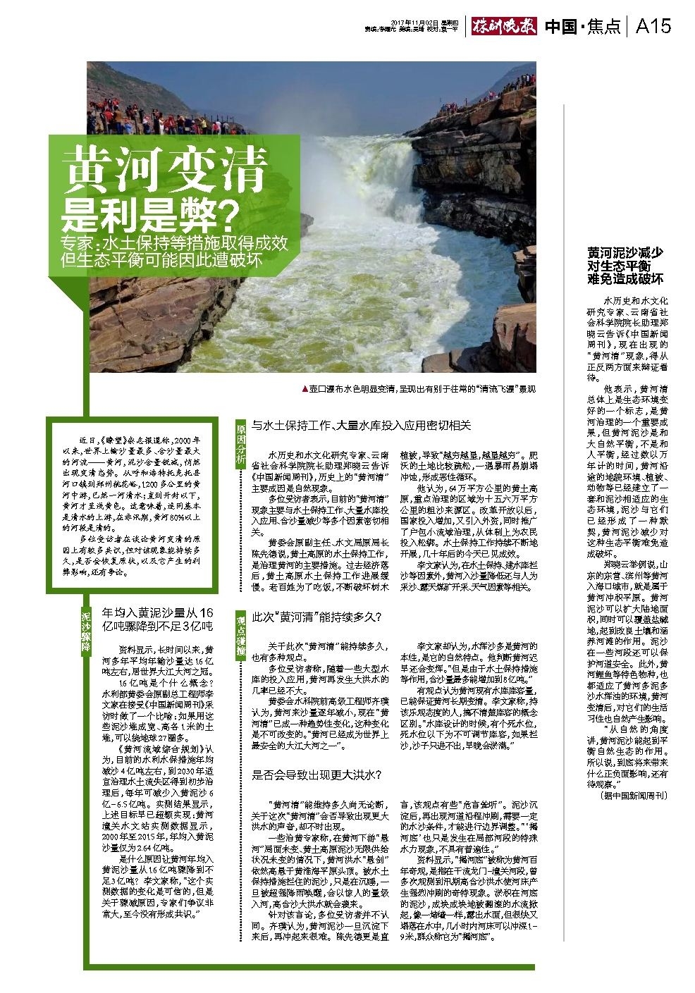 黄河泥沙减少 对生态平衡 难免造成破坏