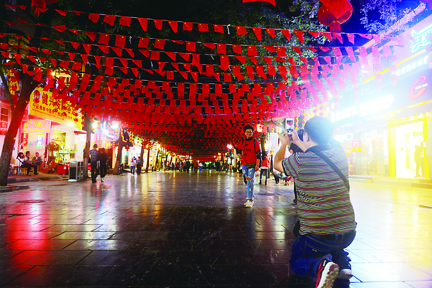 ▲桂林步行街的夜景,让团友抓紧时间拍照