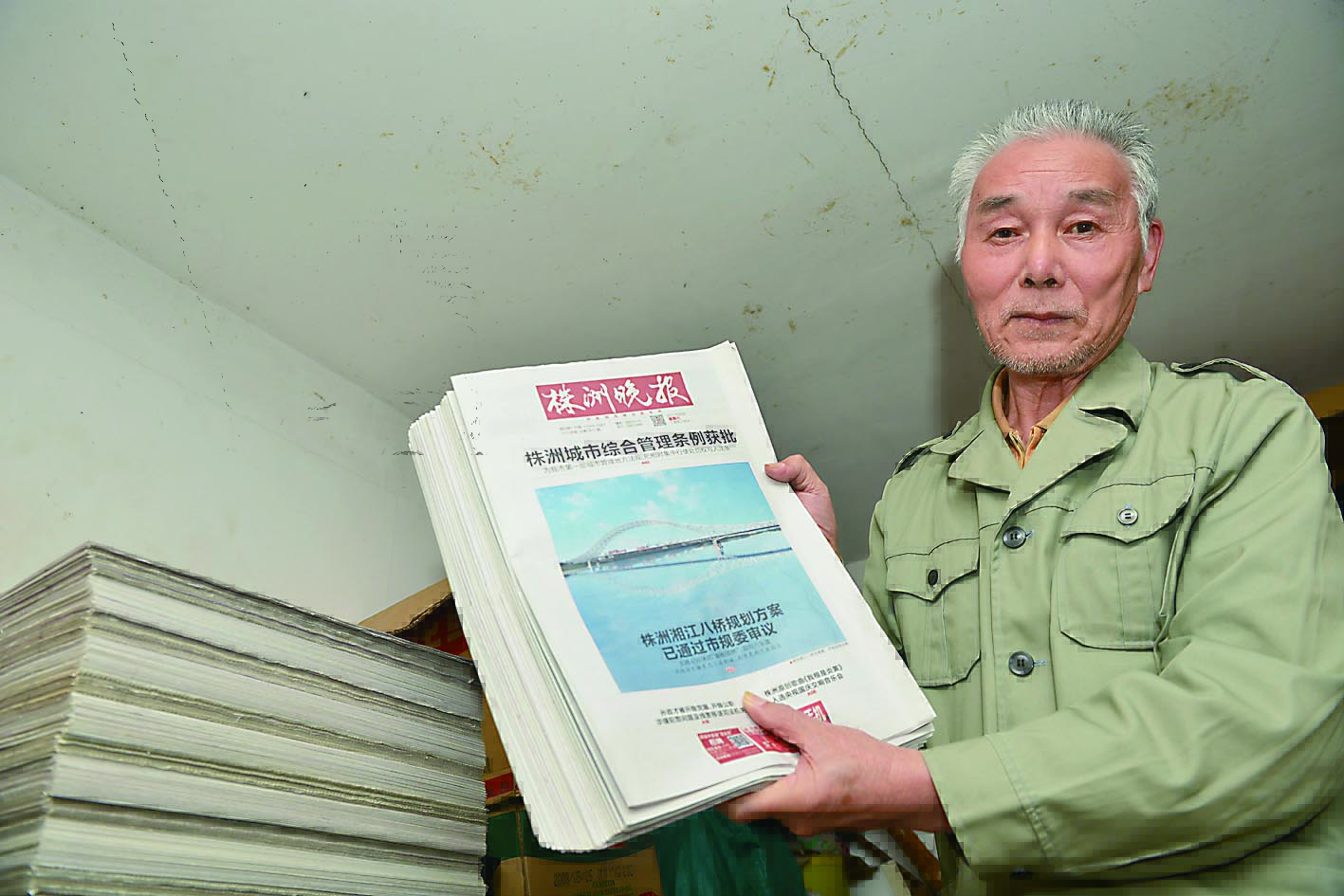 真正的喜爱,是默默地呵护,从不喧哗。一张张新闻纸,细细捋顺,一份,两份……一叠,两叠……越压越实,随着时间的推移,变成一座又一座“山峰”,立在阳台上、车库里,每天推开门,与晚报相守一天,肚子里装满了故事。