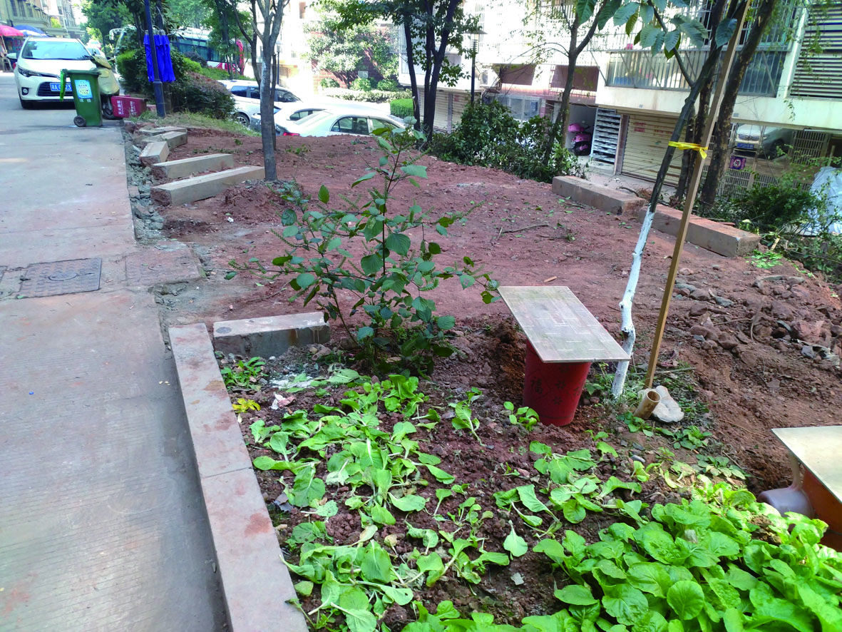 ▲绿化带被毁,种上蔬菜 记者 姚时美 摄