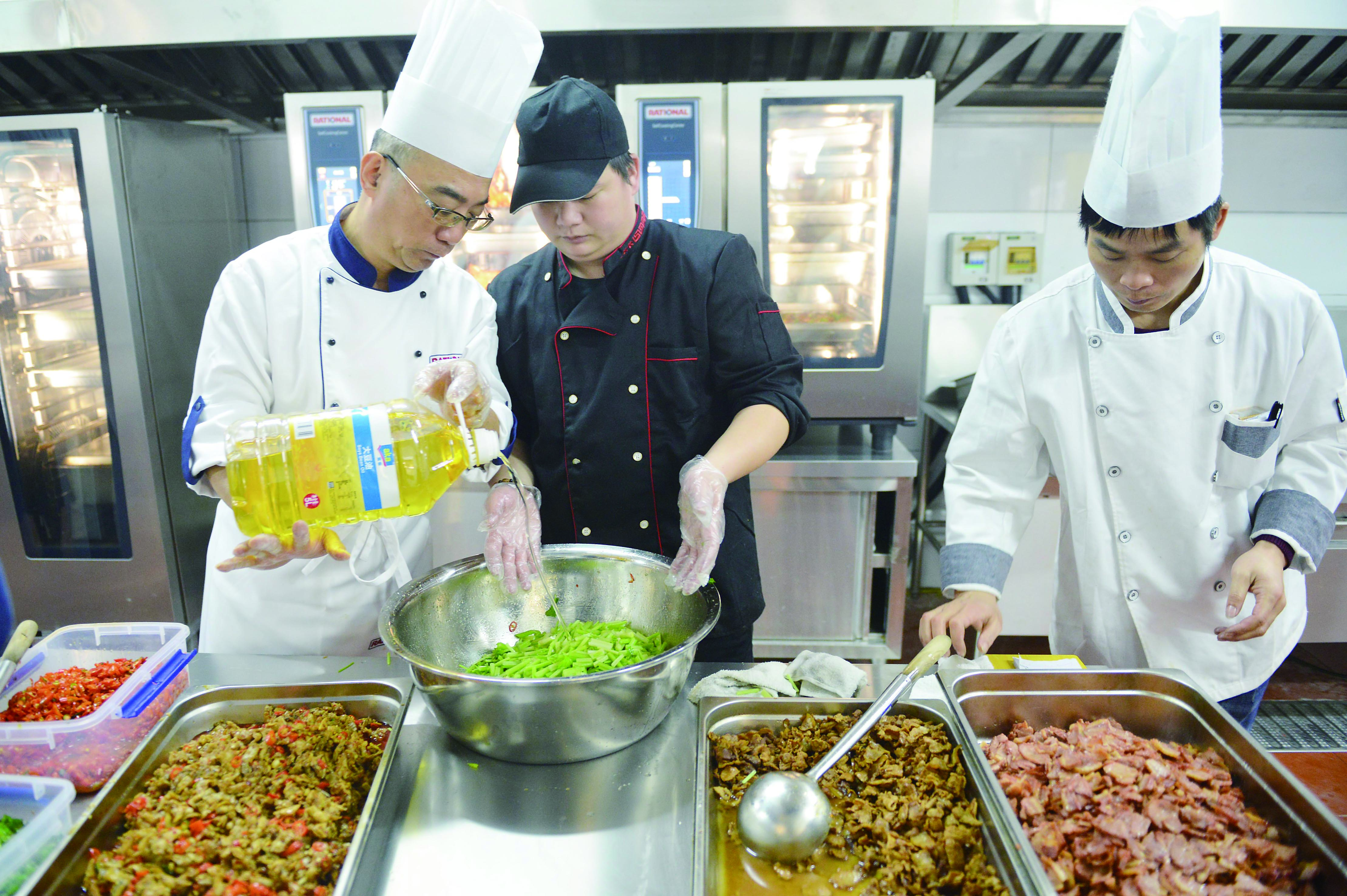 ▲11月1日,动力谷食堂,工作人员正在拌菜,为机器人炒菜作前期工作 记者 谢慧 摄