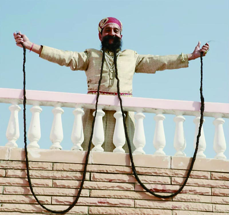 来自印度拉贾斯坦邦斋浦尔的拉姆·辛格对于自己所拥有的一项吉尼斯世界纪录感到非常自豪,他有着长为18.5英尺(约为5.6米)长的胡子,连续多年成为了世界上留着最长胡子的人。