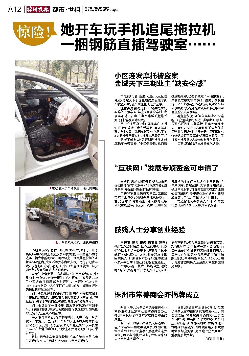 她开车玩手机追尾拖拉机 一捆钢筋直插驾驶室……