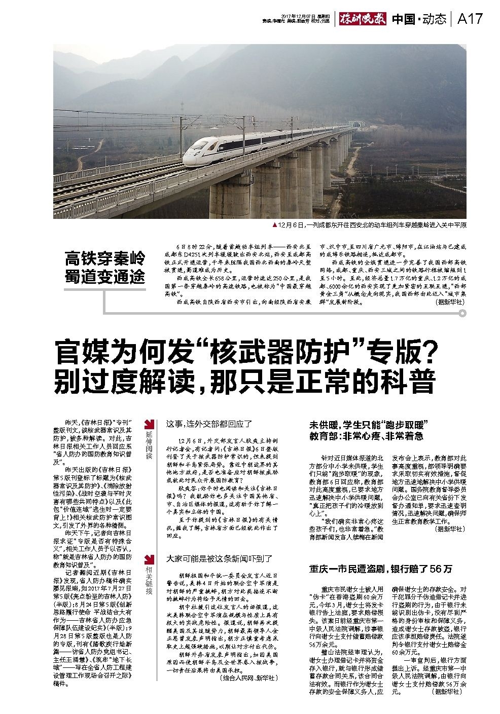 官媒为何发“核武器防护”专版? 别过度解读,那只是正常的科普