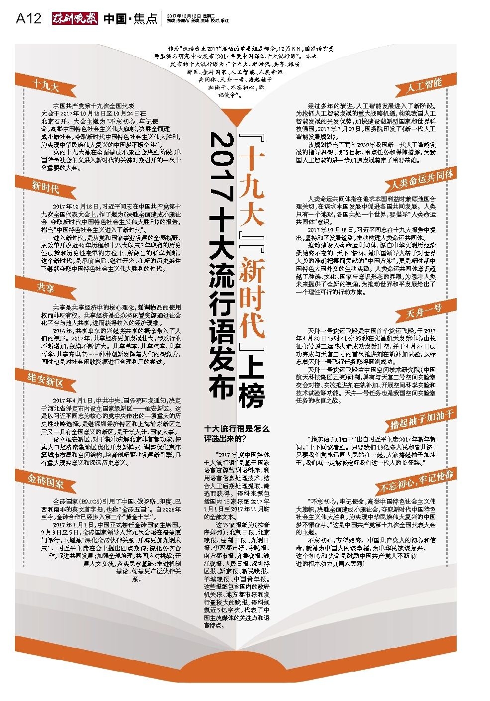 2017十大流行语发布 “十九大”“新时代”上榜