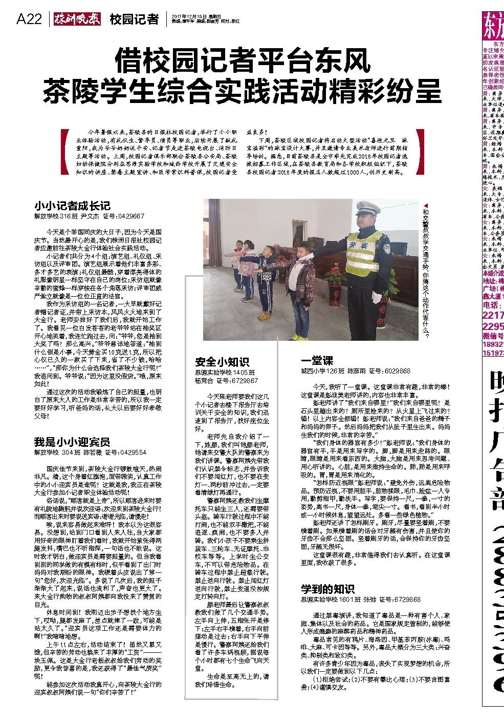 借校园记者平台东风 茶陵学生综合实践活动精彩纷呈