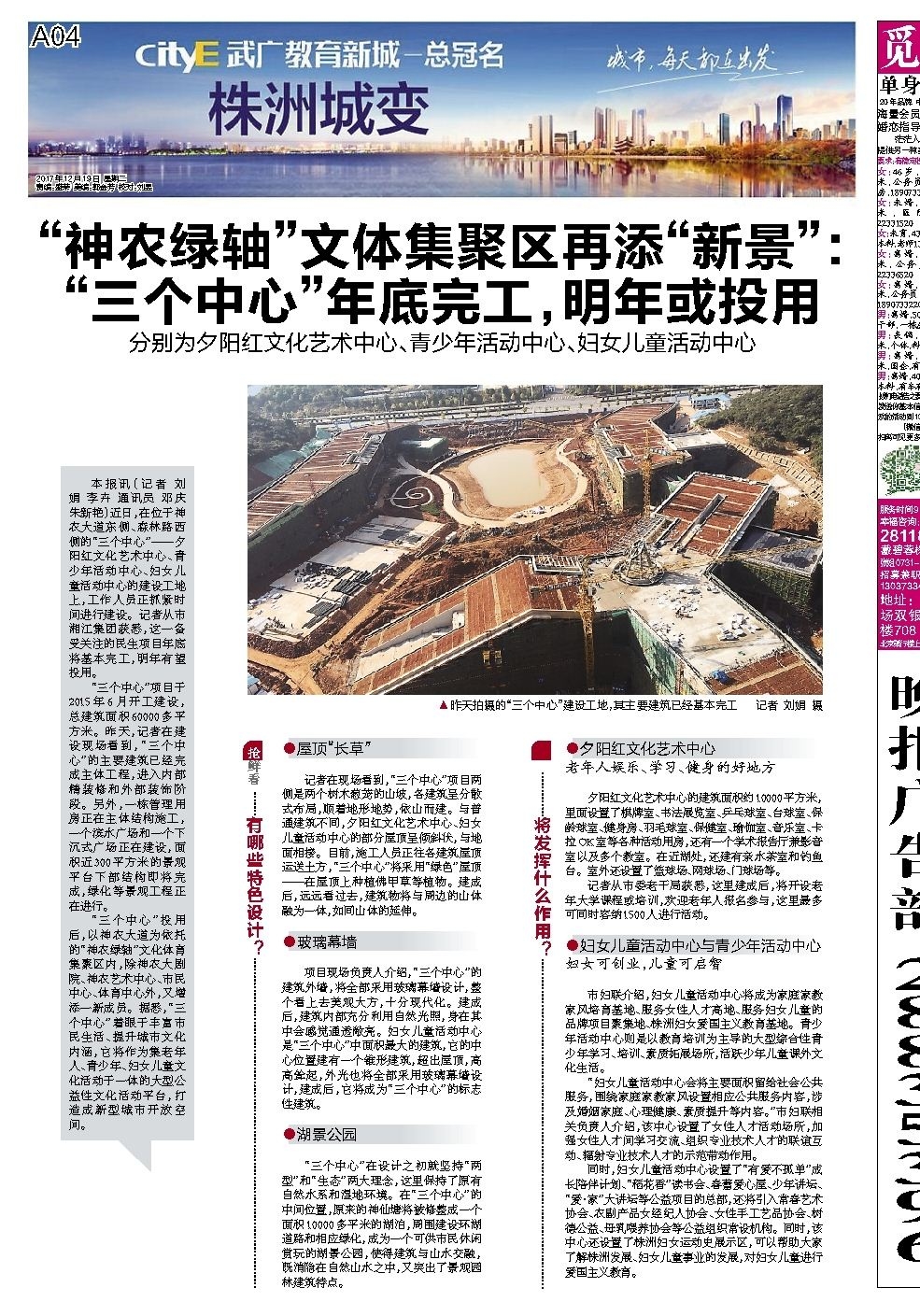 “神农绿轴”文体集聚区再添“新景”: “三个中心”年底完工,明年或投用