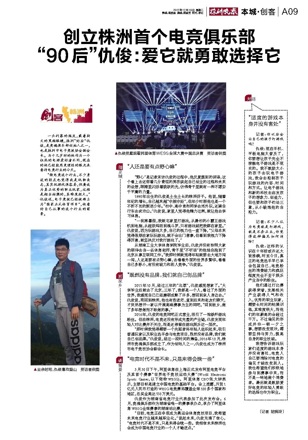 创立株洲首个电竞俱乐部“90后”仇俊:爱它就勇敢选择它