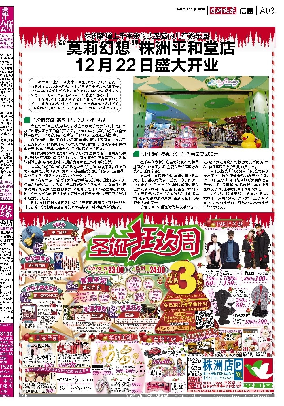 “莫莉幻想”株洲平和堂店 12月22日盛大开业