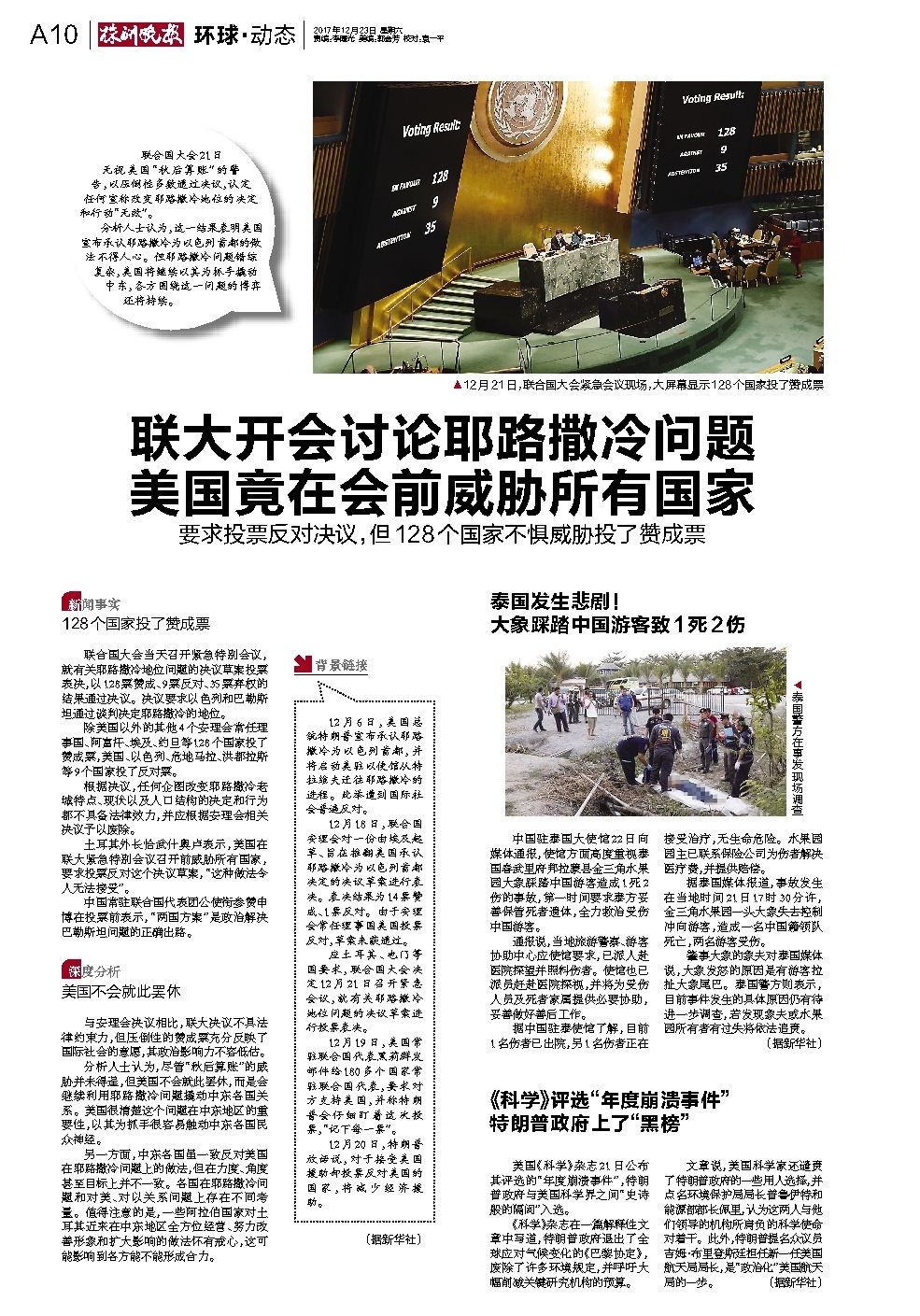 联大开会讨论耶路撒冷问题 美国竟在会前威胁所有国家