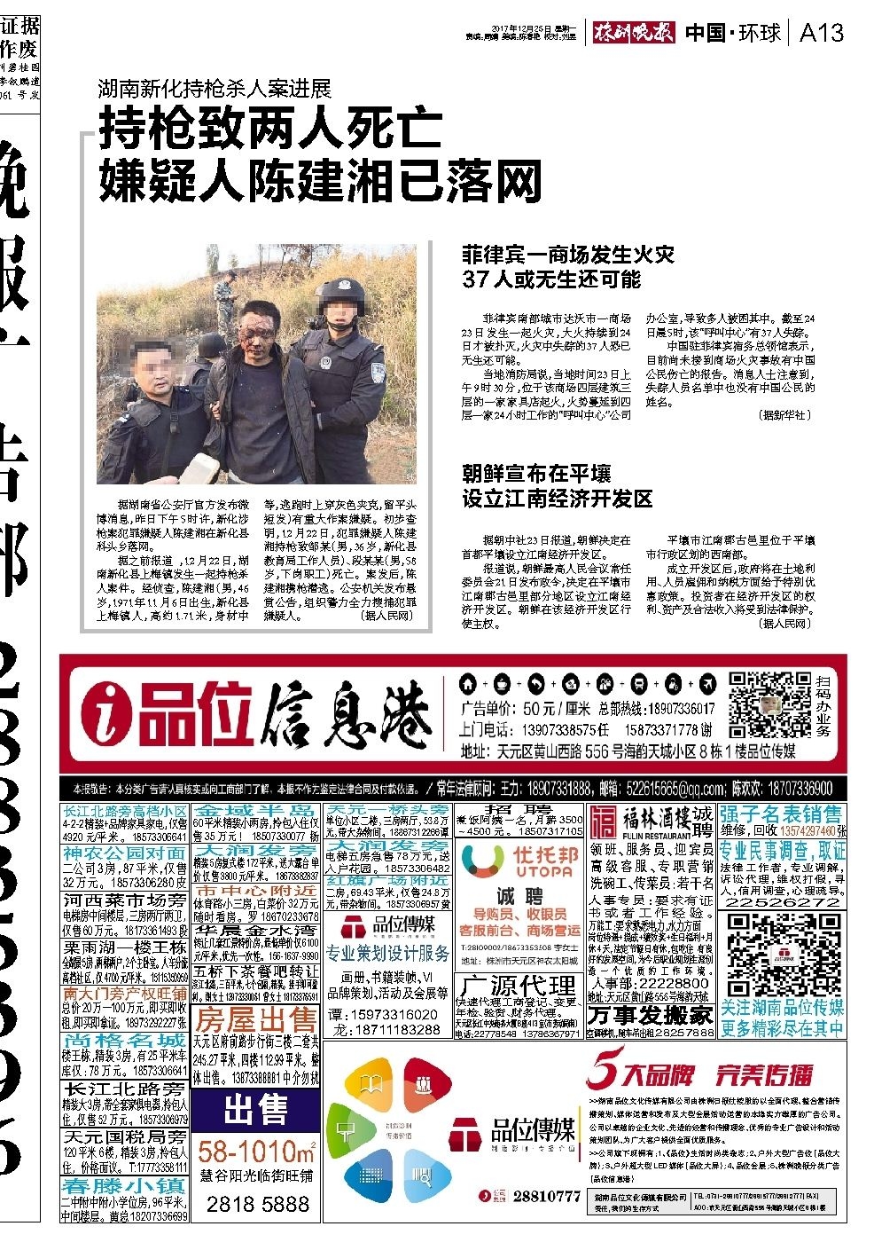持枪致两人死亡 嫌疑人陈建湘已落网
