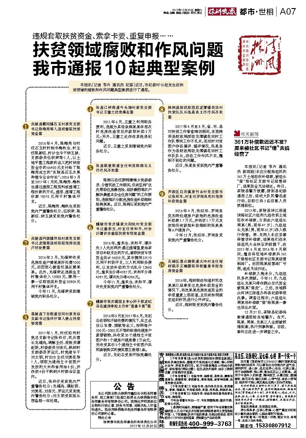 扶贫领域腐败和作风问题 我市通报10起典型案例