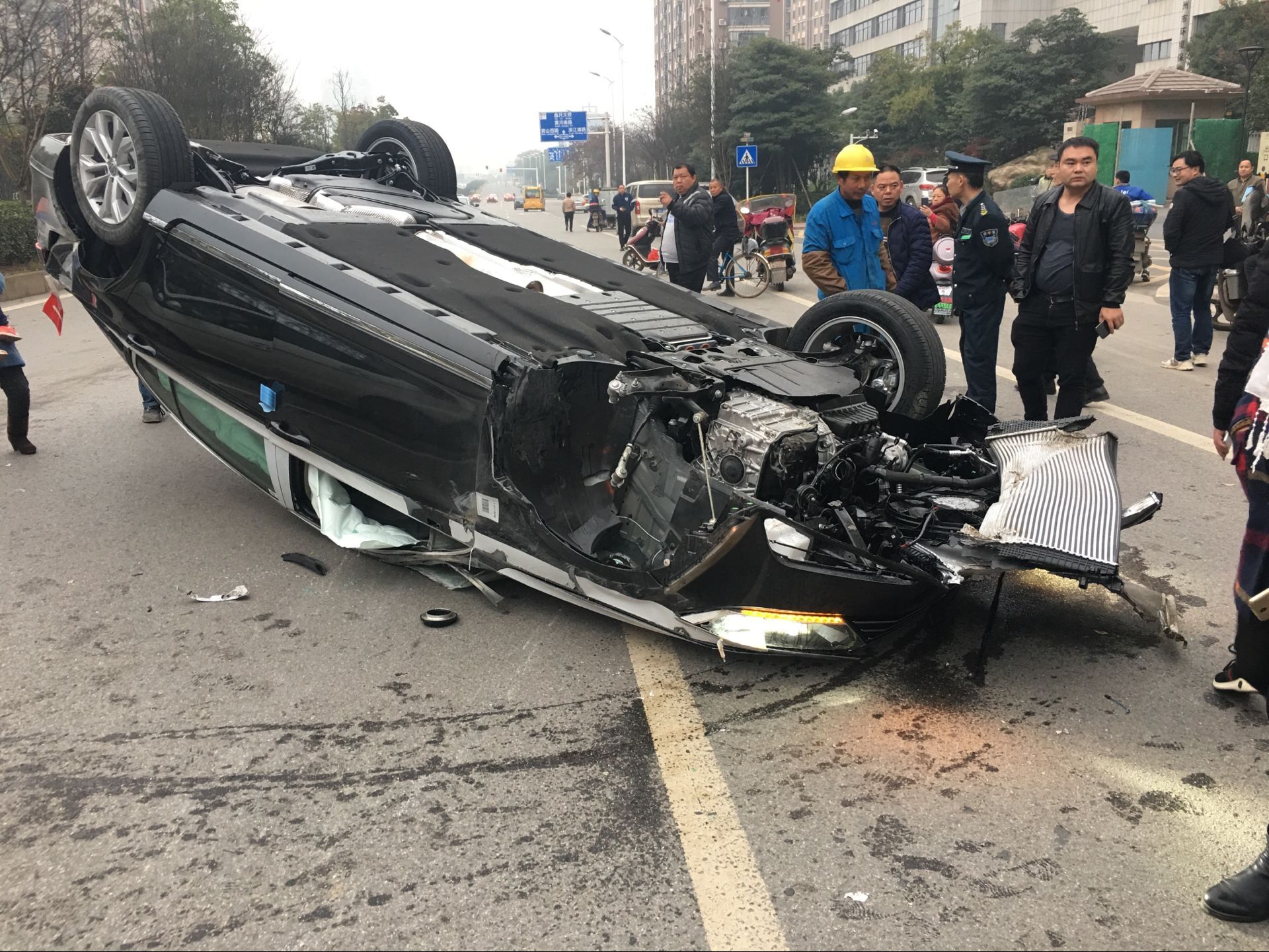 本报讯(记者 肖蓉 通讯员 许琳)昨日下午4点左右,在天元区衡山中路,一辆崭新的小车“四脚朝天”地仰翻在地,车被毁得惨不忍睹。幸运的是,没有造成人员伤亡。