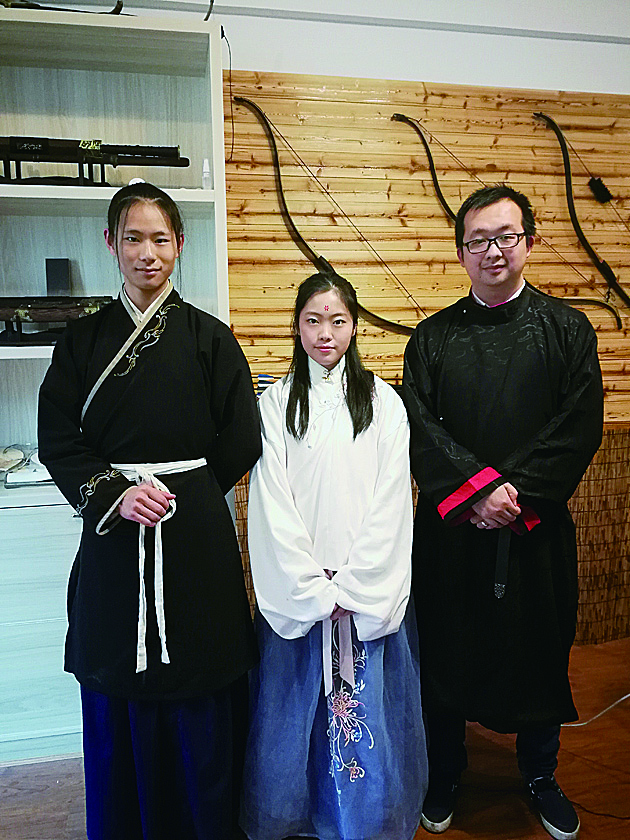 ▲罗绘峰(左)、王蕾(中)、杨晰(右)因为爱好汉服而成为好朋友