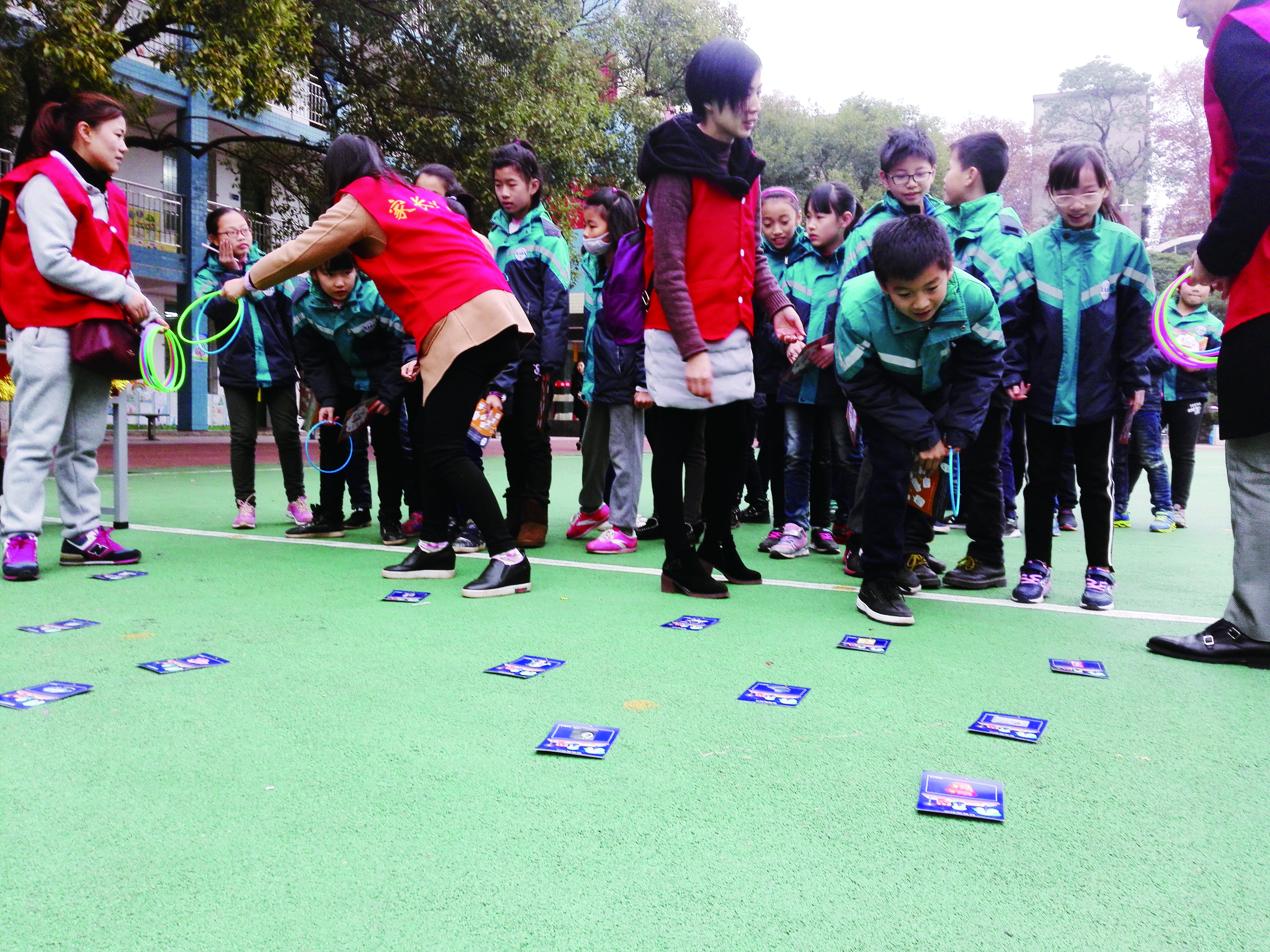 ▲昨天上午,八达小学的孩子们通过套圈猜价格的方式,理解商品的价值