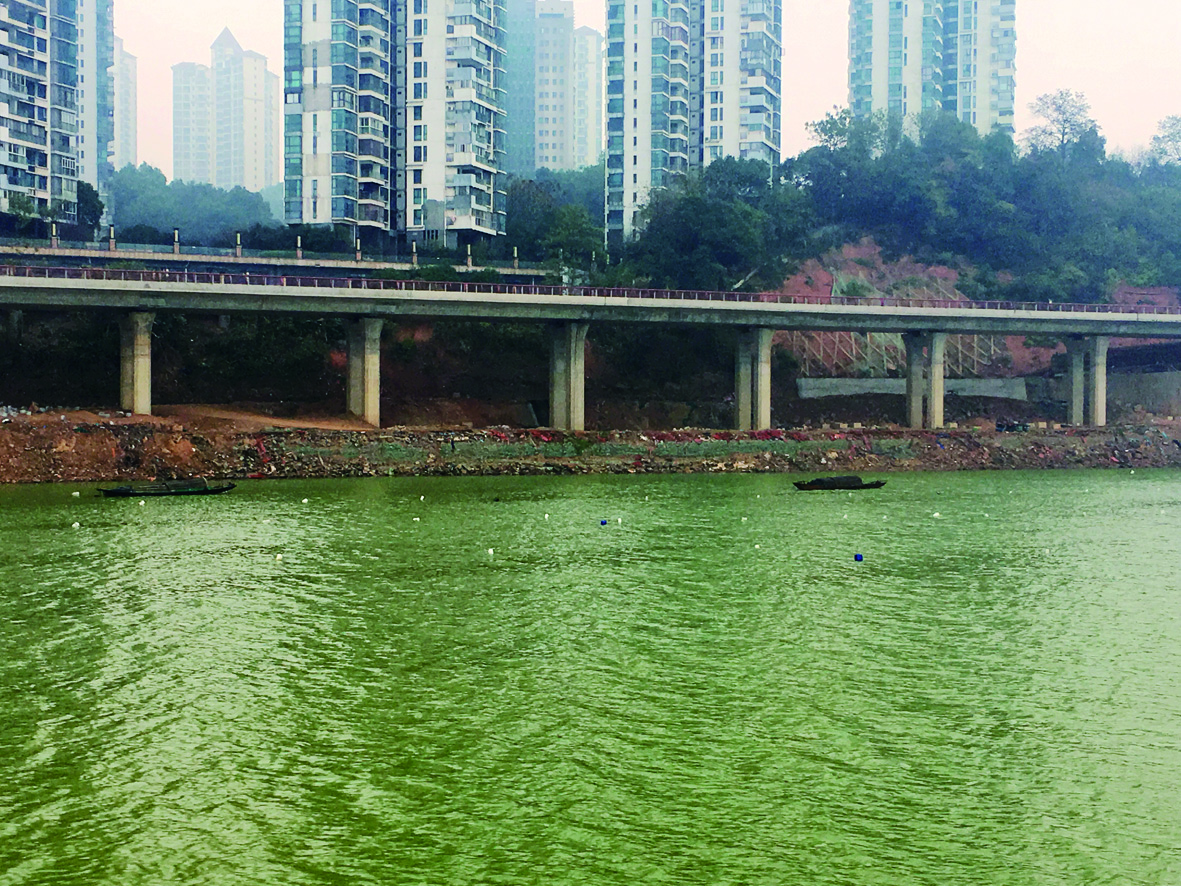 ▲昨天,江面上,仍有渔民在饮用水源保护区铺网捕鱼 记者 戴凛 摄