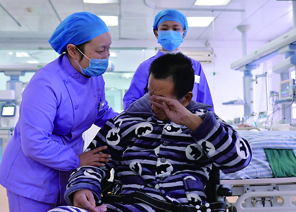 ▲得到医护人员悉心照顾,准备出院的梁爹爹感动得落泪