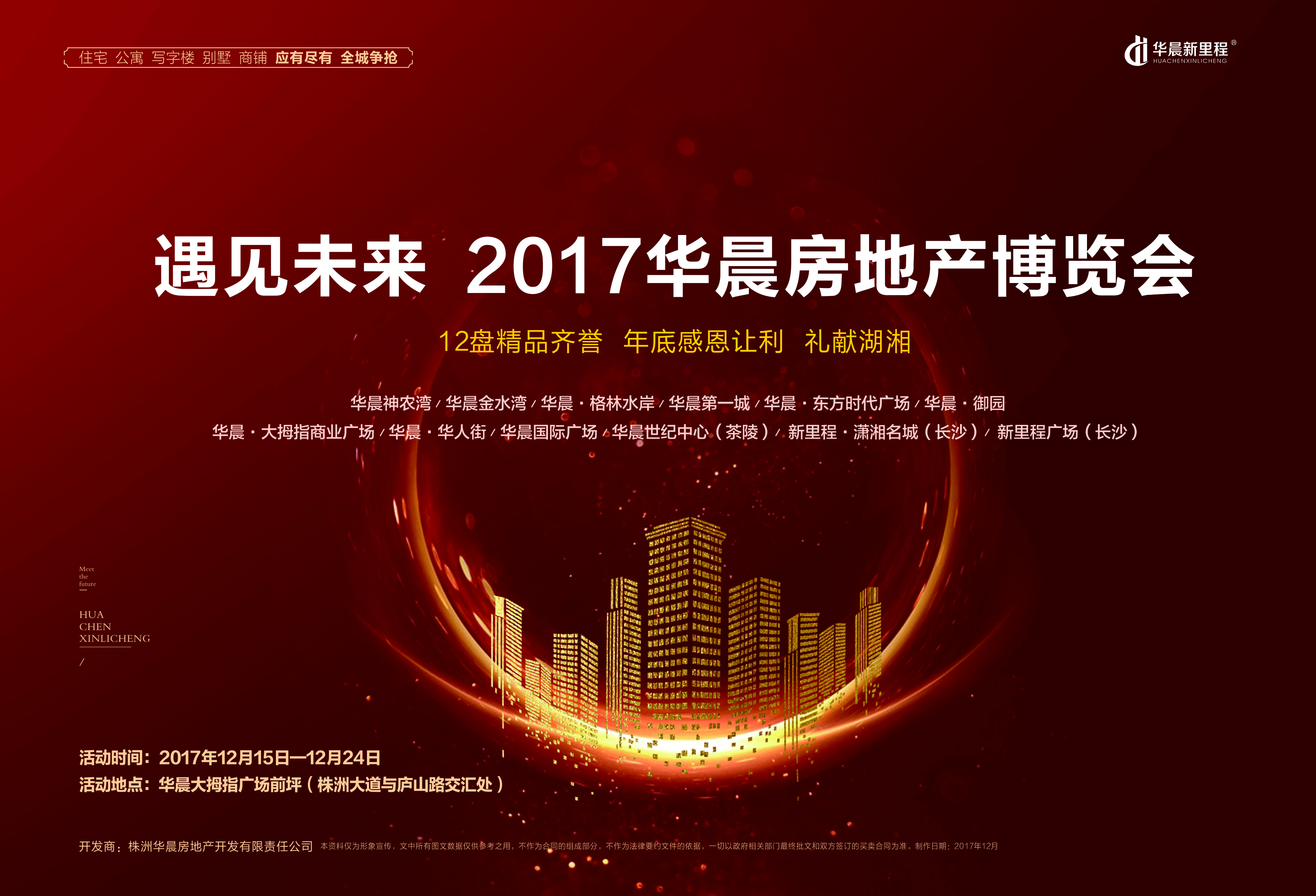 明日起至12月24日,2017华晨房地产博览会将在华晨大拇指广场举行,华晨旗下12盘齐聚,无论你是想买住宅、商铺、写字楼、公寓或者别墅,都有合适的产品可了解。此外,宝贝来活动现场挂心愿,华晨将为你实现愿望;全民寻宝抢礼品;购房送钜惠......六大主题活动,未来10天,来华晨房博会现场嗨翻天。