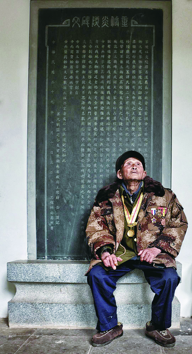 在写有“期盼祖国完全统一”的回归碑前,张卓豪驻足了许久,双手不停地抚摸碑上的中国地图,“日本鬼子以前占领了大部分的中国国土,我们这些当兵的是用鲜血和生命把他们赶走的。那时候打仗很苦,很多战友都牺牲了,我现在还会经常梦到他们……”