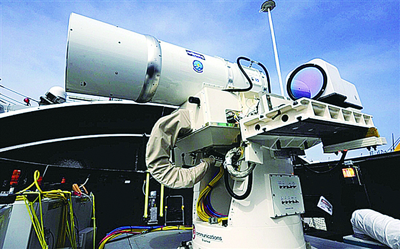 2014年8月 美国海军在“庞塞”号两栖船坞运输舰上率先安装了第一部激光武器。今年7月中旬,“庞塞”号在波斯湾进行了海上激光武器试验,击落了1架无人机,整个打击过程精准高效且隐秘无声。