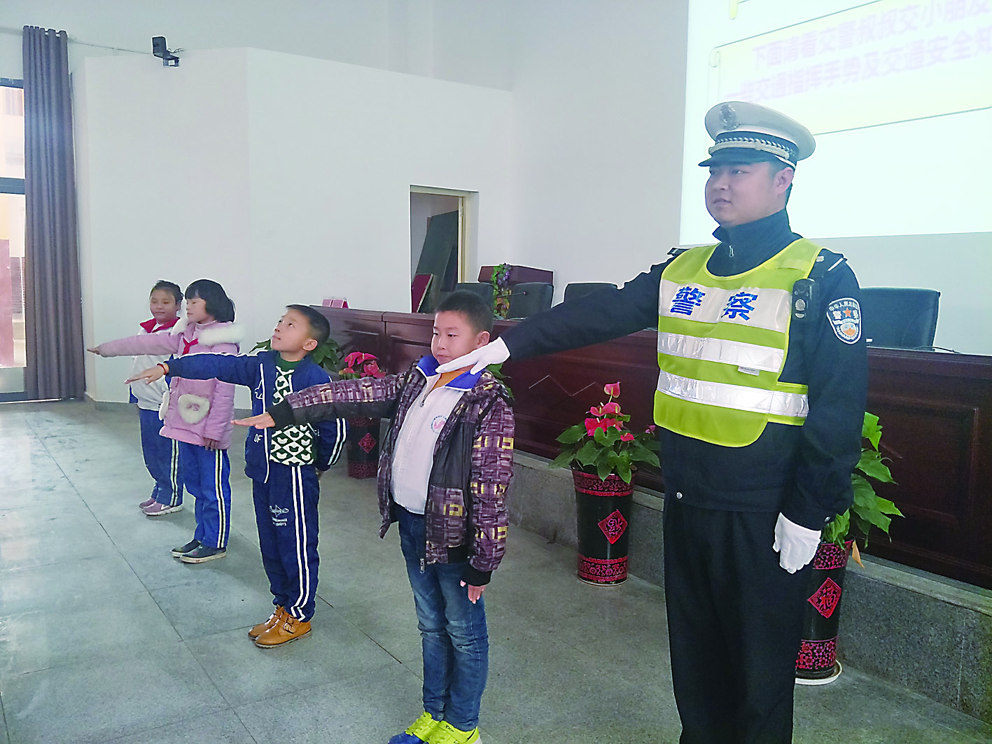 颜老师最后让警察叔叔教我们做了几个交通手势。左手向上伸,五指张开是停下;左手右手横着,右手向前摆动是过去;右手向下平伸是慢行。警察阿姨还给我们看了许多车祸视频,据说每个小时都有七个生命飞向天堂。