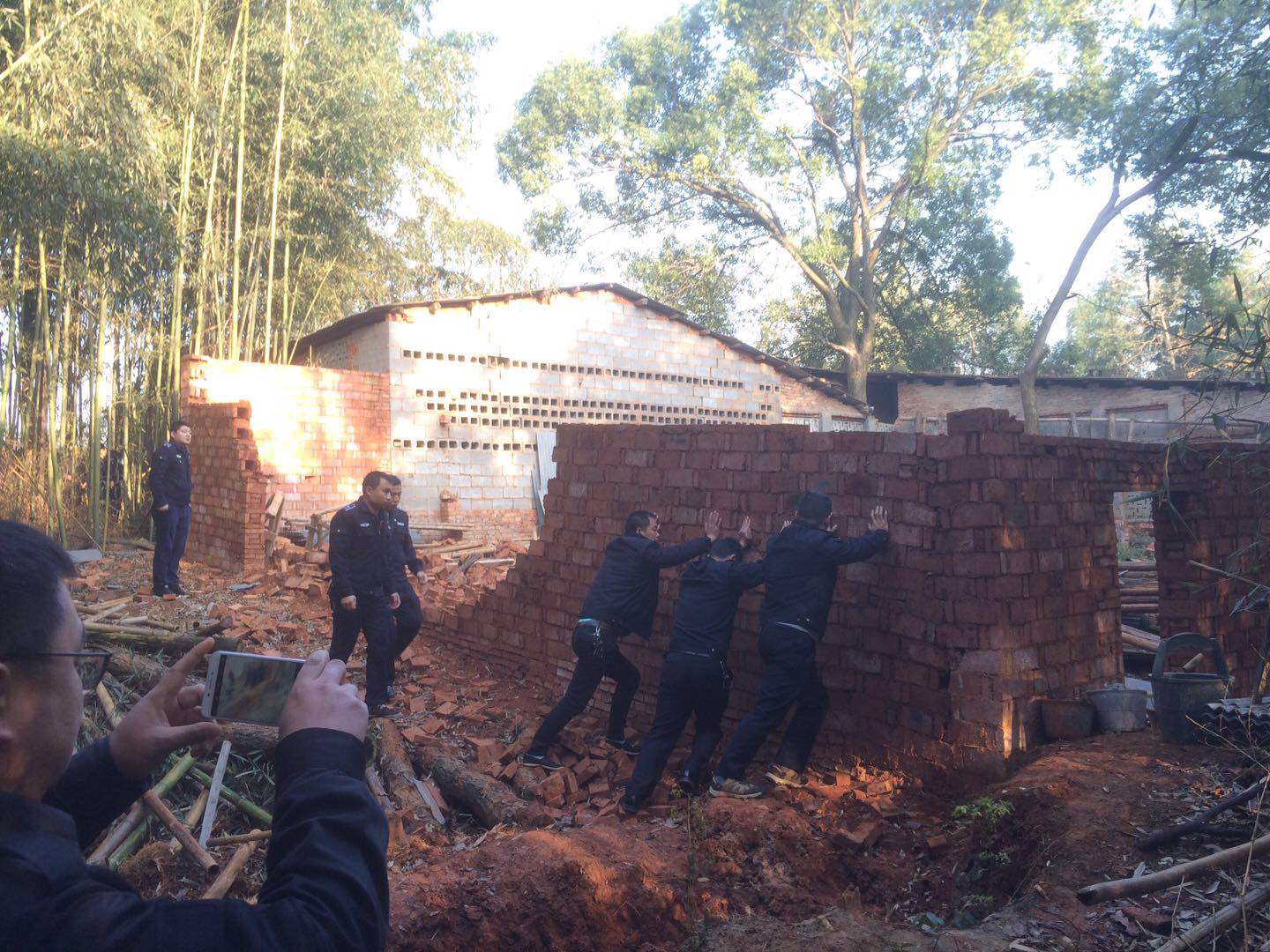 昨天上午10时许,马家河街道治违控违中队以及街道城管办的工作人员赶到现场,对违建的房屋进行了拆除。