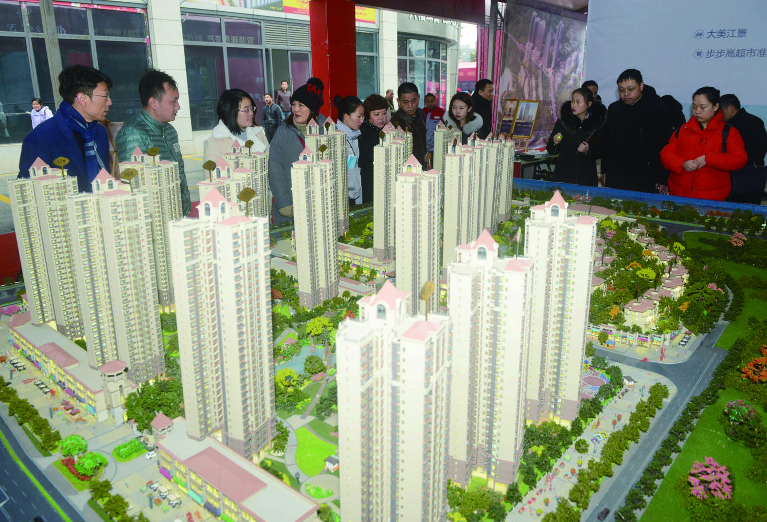 ▲华晨房博会上,市民在华晨金水湾沙盘前看房、咨询 记者 谢慧 摄