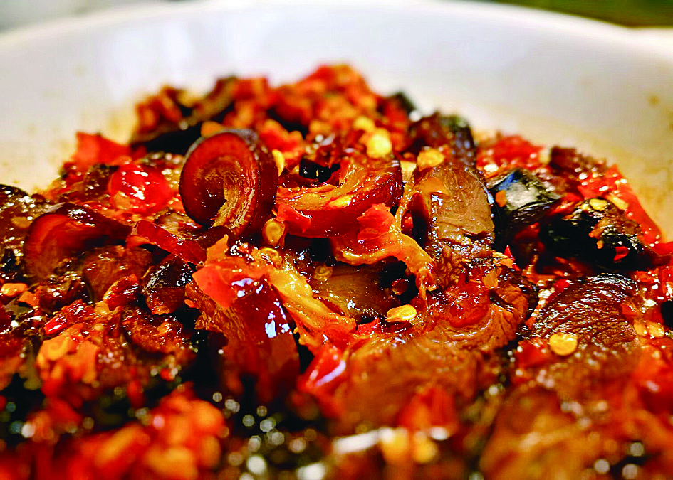食材过关,侍弄的人又够讲究,这一大锅黄焖狗肉的滋味自可想象——肉够烂,却不乏嚼劲,汤酽得能黏住人的嘴巴,呼啦啦地能送下一碗接一碗的米饭……