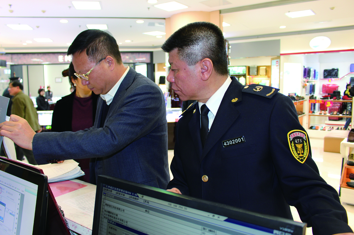 ▲市质监局局长刘伟陪同考核组成员在株百考查服务质量 通讯员供图
