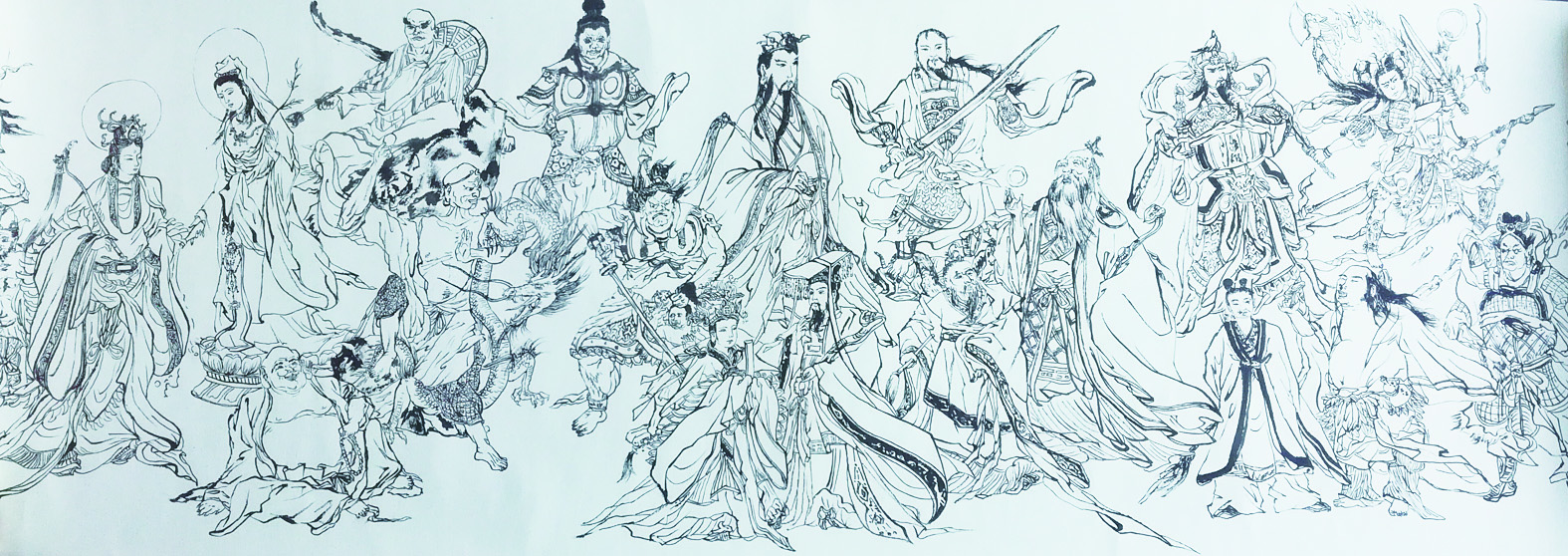 金鎏汇很喜欢看四大名著,尤其是《西游记》,电视剧和原著都看了好几遍。“我看《西游记》原著时,脑子里总是出现很多书中的人物形象,所以就想画一幅长卷,把《西游记》里的人物都画出来。”