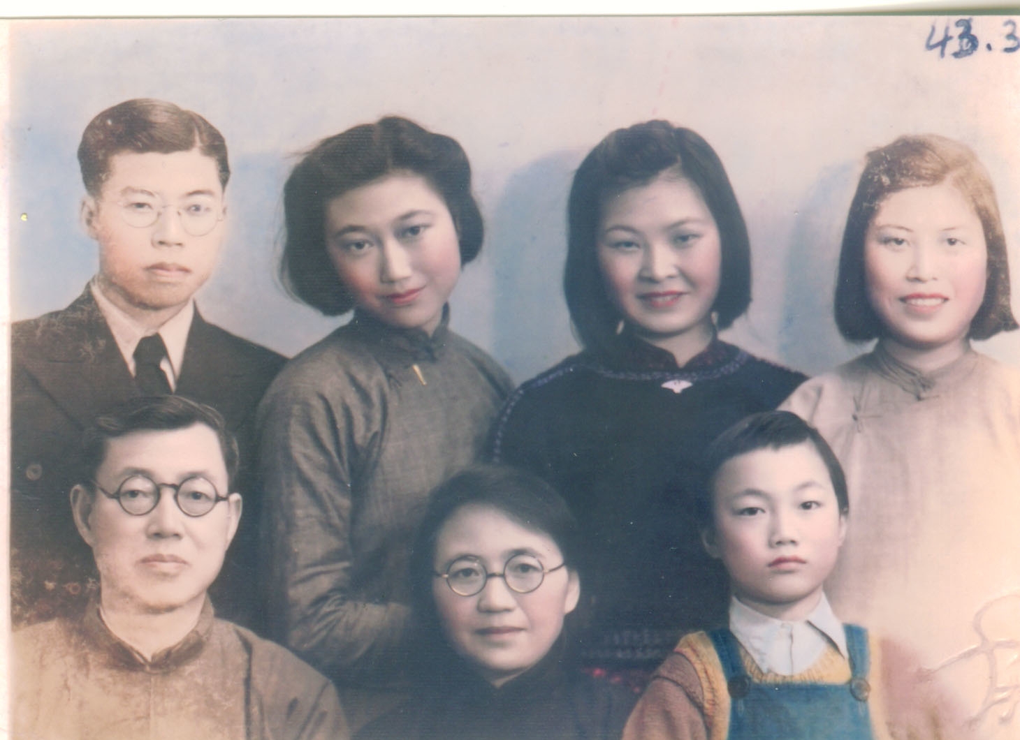 ▲1943年家庭照。前排中为袁昌英,前排左为其丈夫杨端六,前排右为其儿子杨宏远,后排左二为其女儿杨静远。其余人不知道名字,据说是其侄女