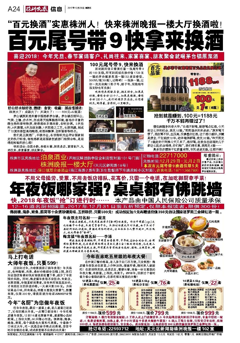 抢订电话:22593712 地址:天元区新闻路株洲晚报一楼102室
