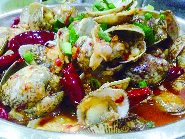 来此吃饭,水煮田鸡是必点的,就是我们之前在店门口看到现剖的,秘制调料煨煮的汤汁咸辣鲜香,现杀的田鸡肉够嫩够滑,食之将尽还可以往里头下各色菜蔬,米粉也可以下入,这就连主食也齐活儿了;小龙虾不当季,略过;辣炒花甲是年轻人的心头好,并不对我这样“老口子”的胃口……