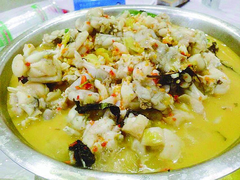 十多年前的株洲流行吃水煮田鸡,现杀田鸡剥皮去头,斩大块,可能勾薄芡,也可能不勾,在秘制调料熬出的汤汁中煨煮,咸辣鲜香,肉质更是细嫩得紧,具体是何地而来的风尚已不可考,反正在向阳广场那一片流行开来,饭点儿,满坑满谷的人,现今在株洲拥趸无数面目繁多的各式跳跳蛙都滥觞于此。