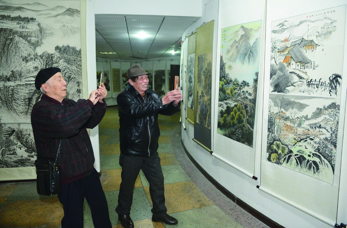 据绘画二班的袁文松老师介绍,本班一共有53名学生,平均年龄在六十岁左右,最大的已有八十多岁,这些作品都是他们平时通过认真系统地学习过后创作出来的,每一幅作品都凝结了老师和学生们的心血,展览展出的不仅仅是书画作品更是老年人的一种精神气。图为画展现场。