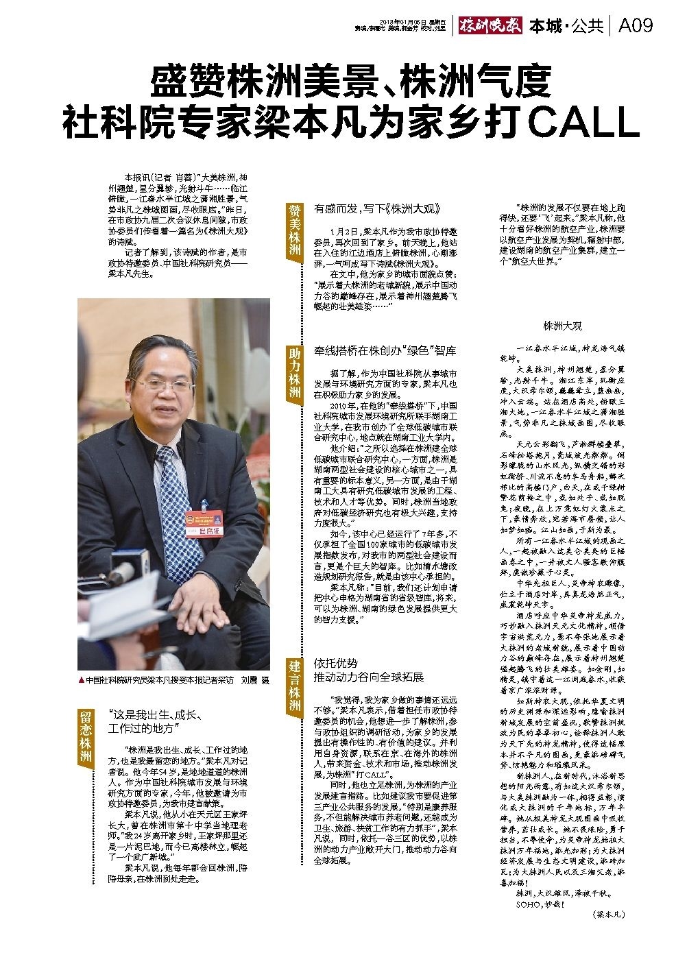 盛赞株洲美景、株洲气度 社科院专家梁本凡为家乡打CALL