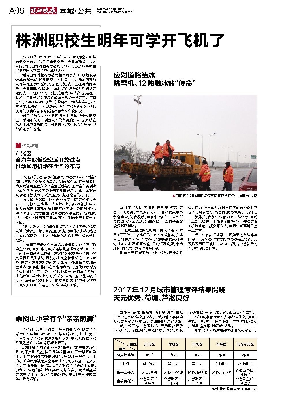 2017年12月城市管理考评结果揭晓天元优秀,荷塘、芦淞良好