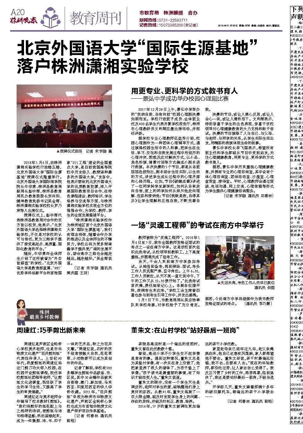 北京外国语大学“国际生源基地” 落户株洲潇湘实验学校